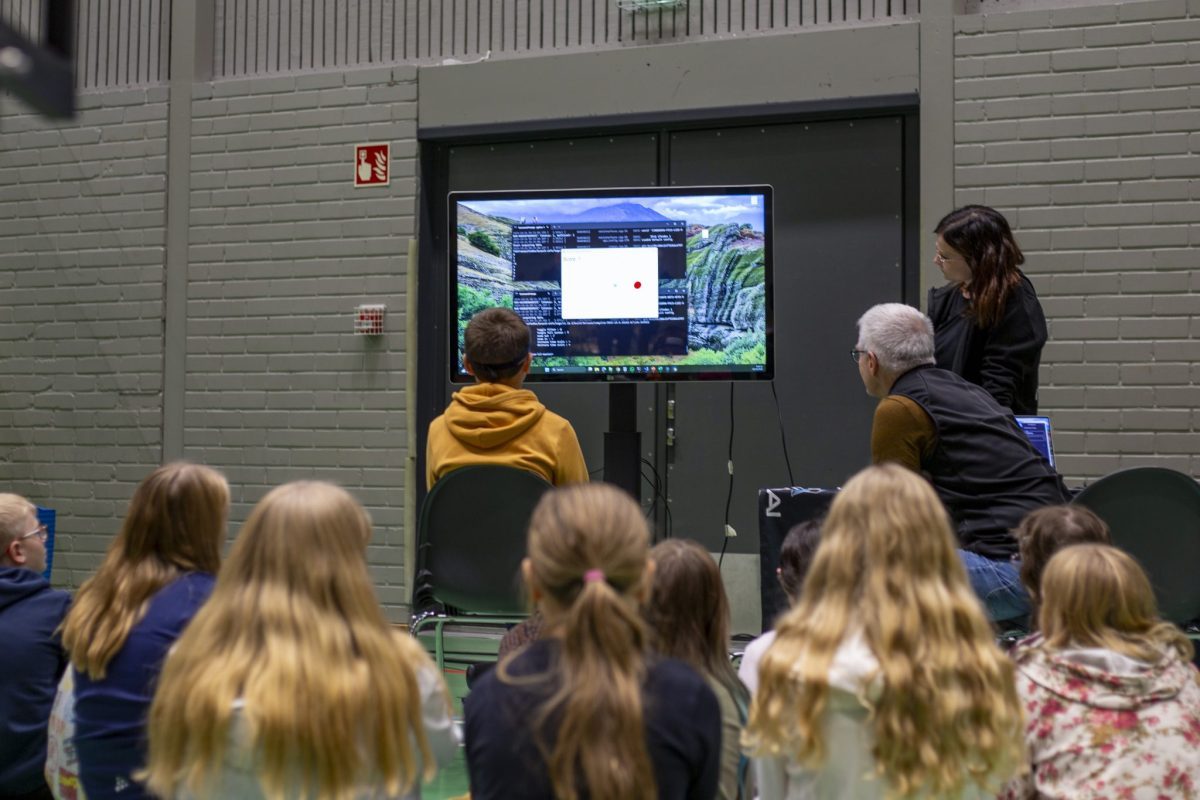 In the morning, 5th and 6th grade pupils from local schools were invited to explore various technologies through six playful tasks. In total, around 260 children got to try tasks related to mobile robotics, cybersecurity, artificial intelligence and other emerging technologies. For example, they got to challenge an AI system to misidentify safety gear, controlled a motion-capture-suited instructor using voice and movement, and identified different wellbeing technology devices.