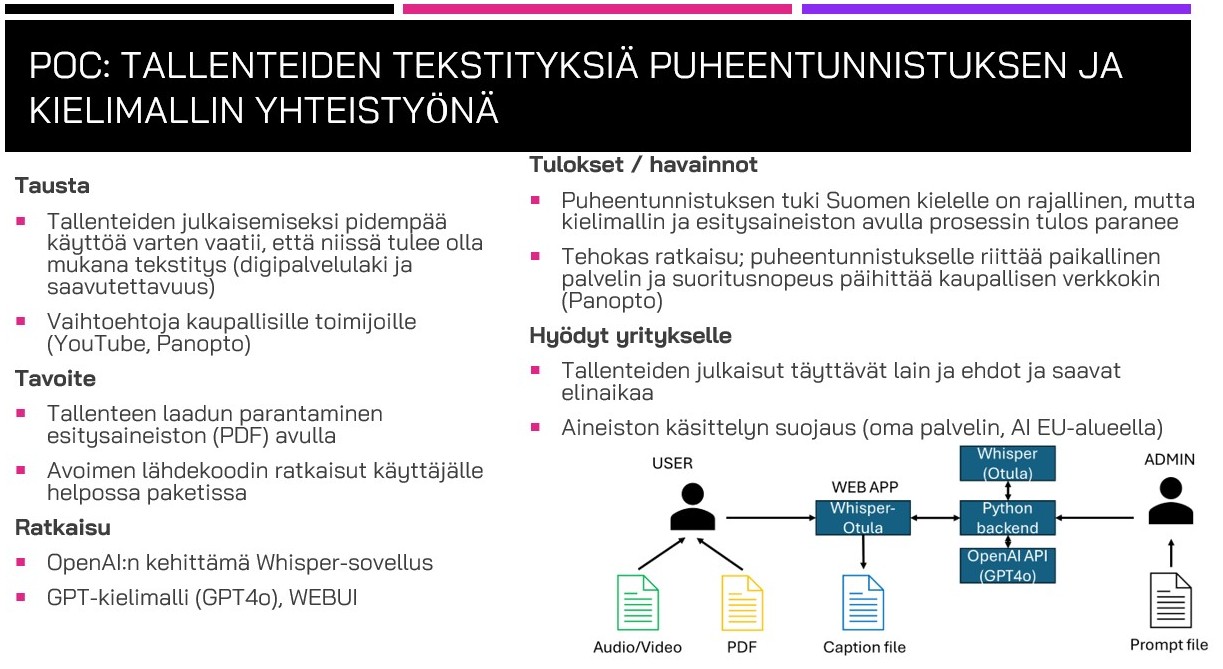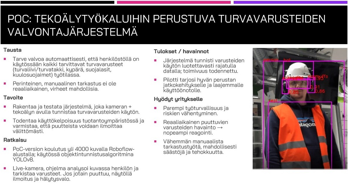 - PoC-pilotti yrityksessä: toteutetaan, jos käyttöympäristö tai olosuhteet sitä vaativat.
