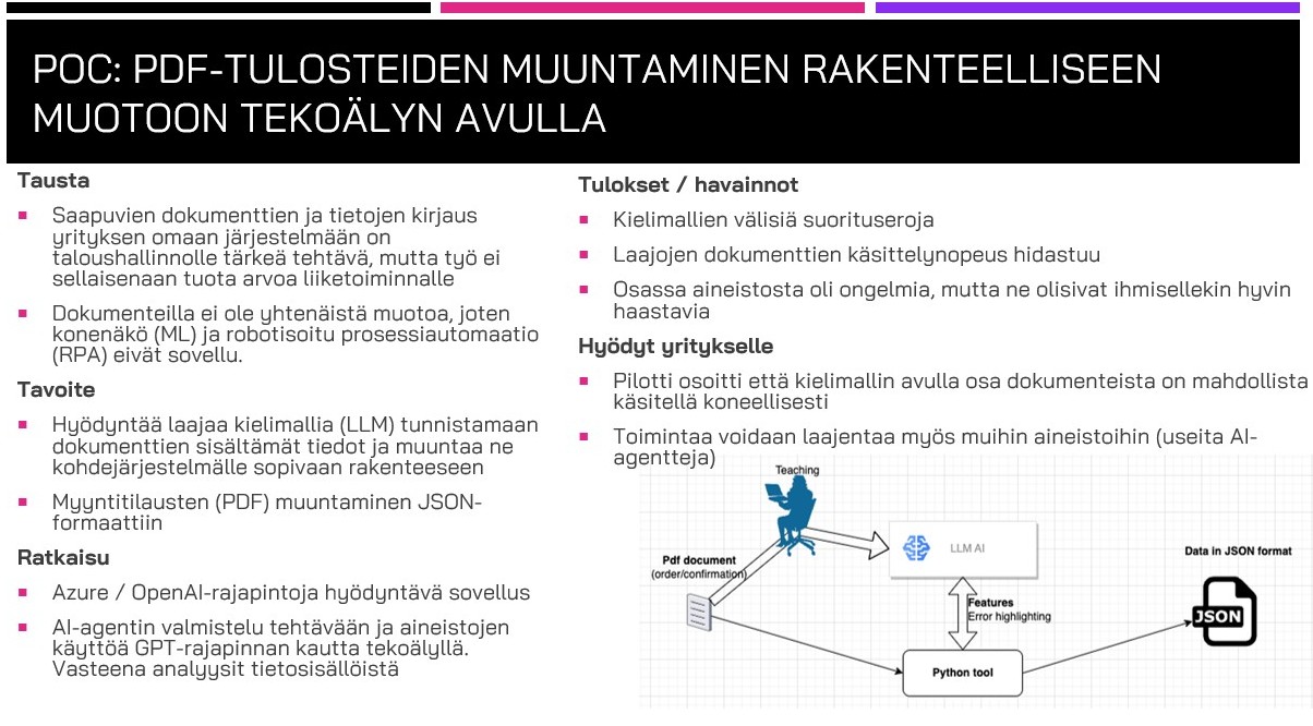 Kaikista kokeiluista ja PoC-piloteista syntyvät löydökset ja tulokset raportoidaan aina selkeässä muodossa yritykselle.