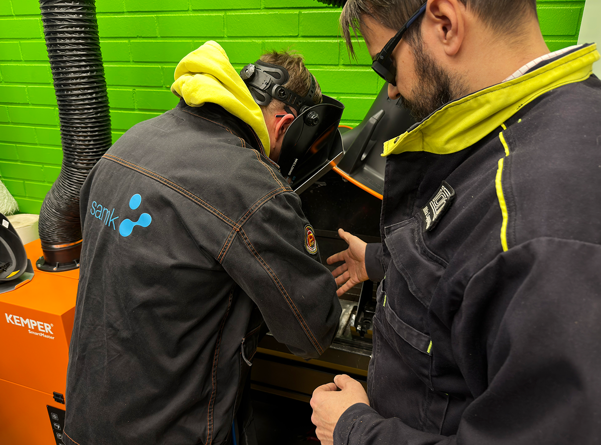 Rennossa ja vuorovaikutteisessa työpajassa nähtiin, miten laser- ja robottihitsaus tuovat teollisuuteen tarkkuutta, nopeutta ja laatua. Aamukahvien ja Ionix Oy:n Ilkka Lappalaisen pitämän laserhitsausta käsittelevän tietoiskun jälkeen tilaisuus jatkui SAMKin Konetekniikan laboratoriossa, jossa osallistujat pääsivät tutustumaan käytännössä laserhitsaukseen, yhteistyörobotteihin ja uusimpiin hitsauslaitteisiin.